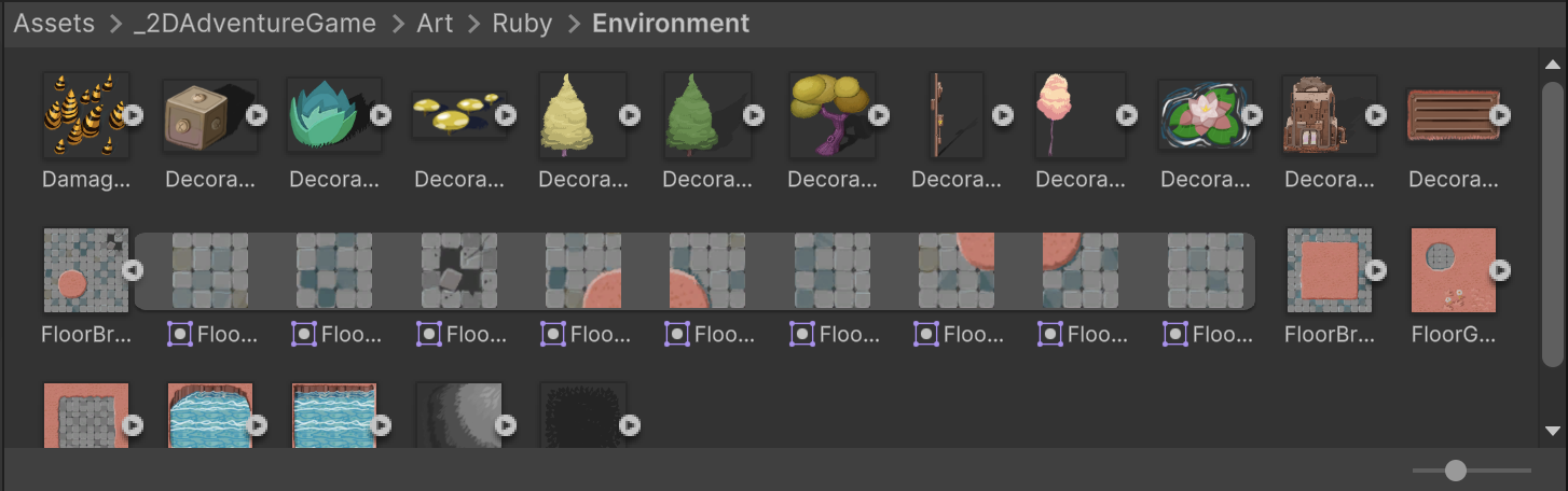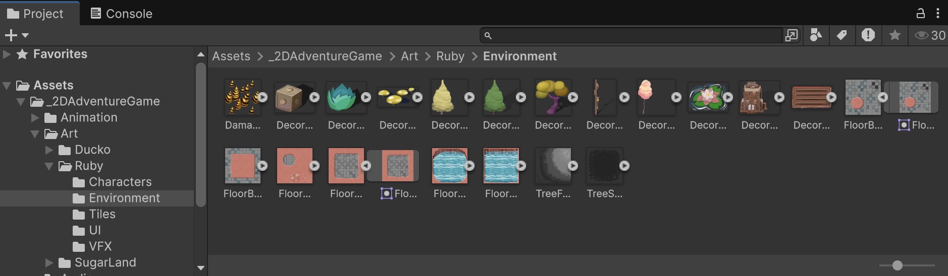 1. In the Project window, navigate to Assets > _2DAdventureGame > Art > [Your Chosen Project] > Environment.