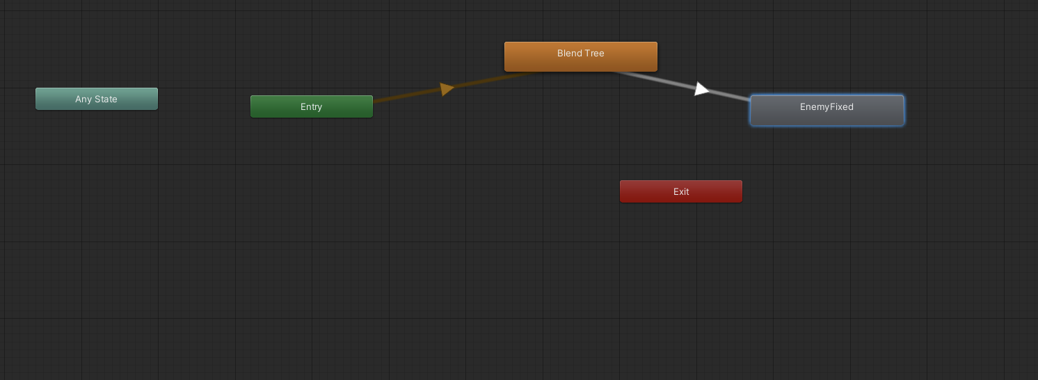 3. Right-click the Blend Tree node, select Make Transition, and then select the EnemyFixed node. The connection between the nodes will have an arrow showing the direction of the transition.