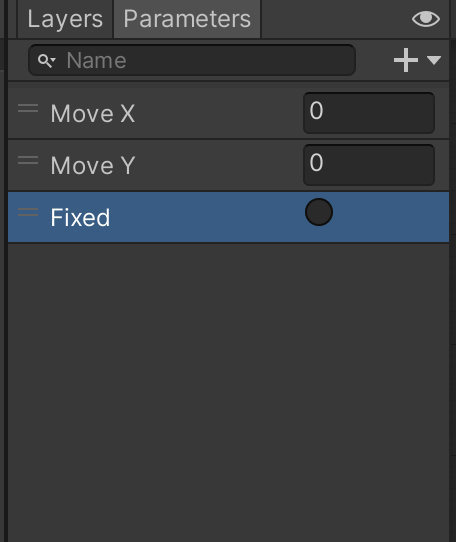 4. In the Layers & Parameters panel, select the Parameters tab, add a new Trigger parameter, and name it “Fixed”.