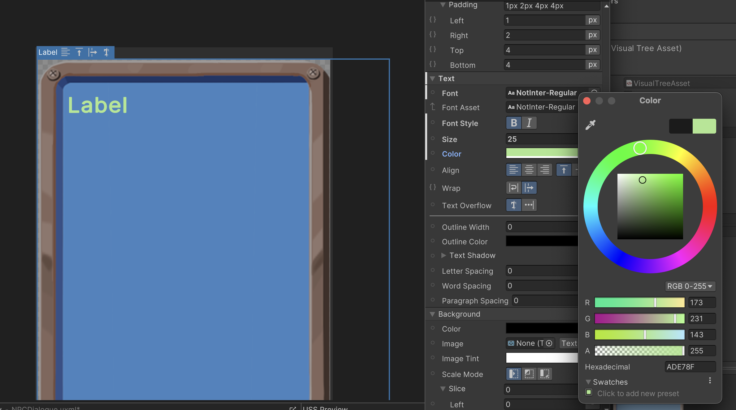 1. Create a new UI Document asset and call it “NPCDialogue”.