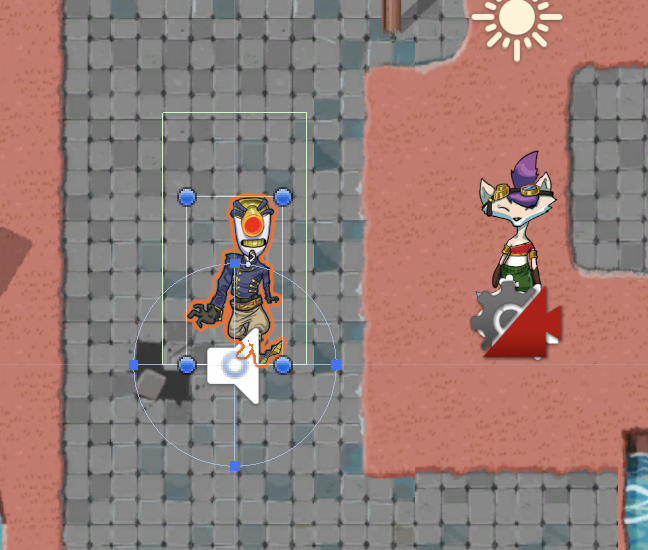 This distance is larger than your entire game world, so you’ll need to adjust it to a more reasonable size. You can drag the dot in the center of the circle, but it’s easier to make the adjustment in the Inspector window.