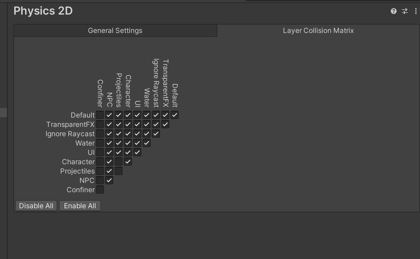 4. From the main menu, select Edit > Project Settings > Physics 2D.