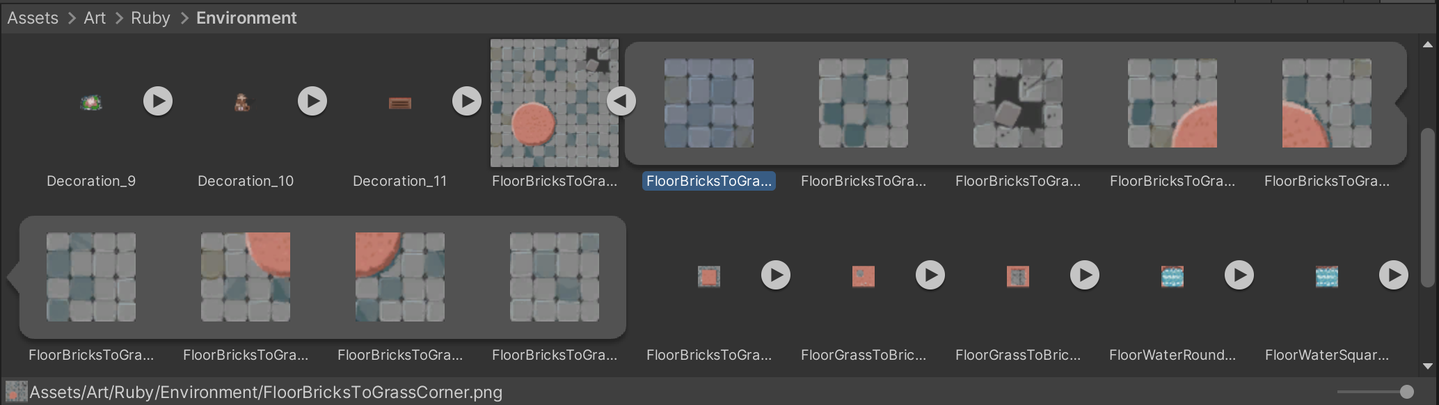 2. Select the FloorBricksToGrassCorner tileset and then select the arrow to review the sprite for the image file.