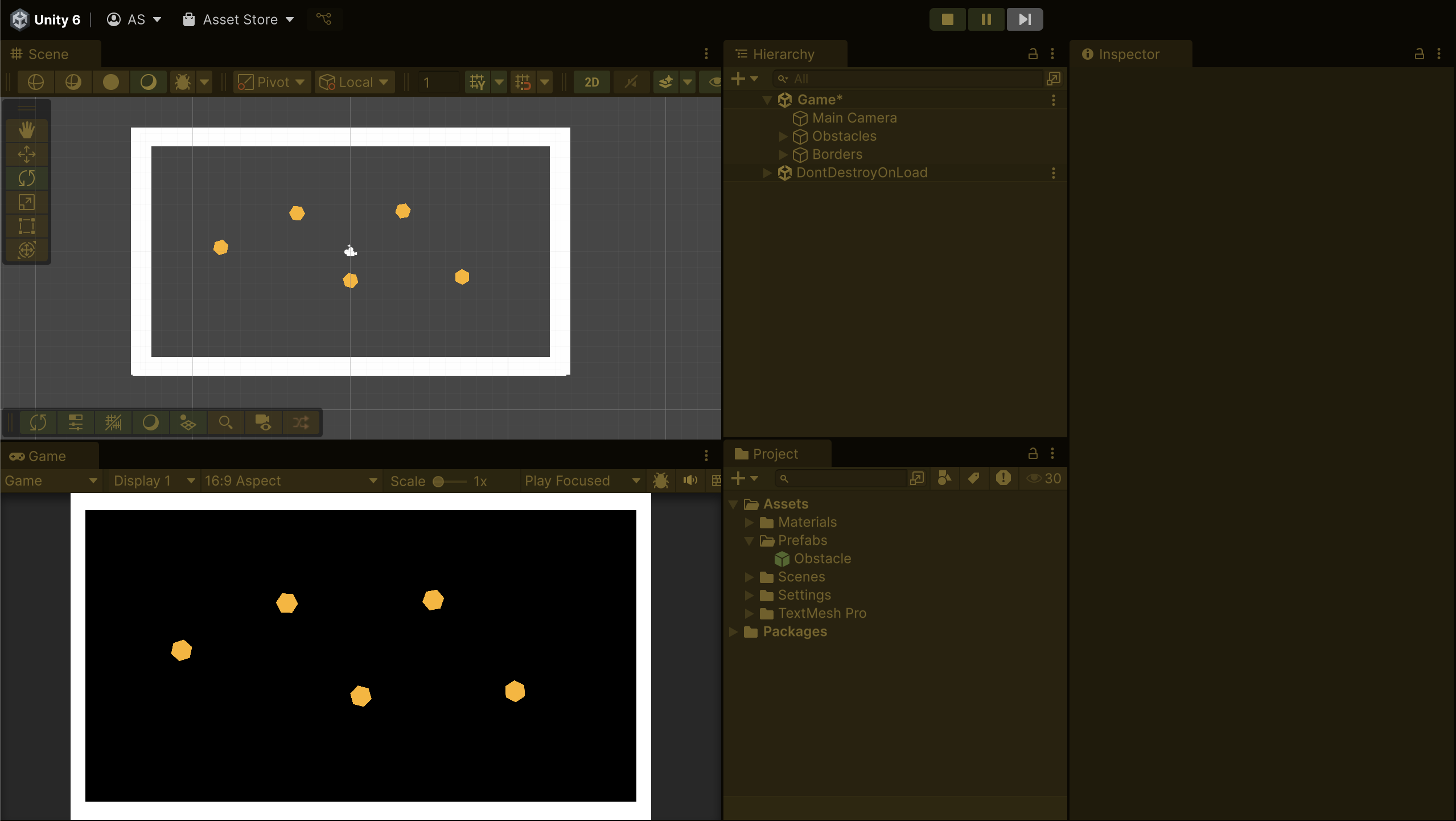 - Notice that the Obstacle GameObject doesn’t move — it just floats in place.