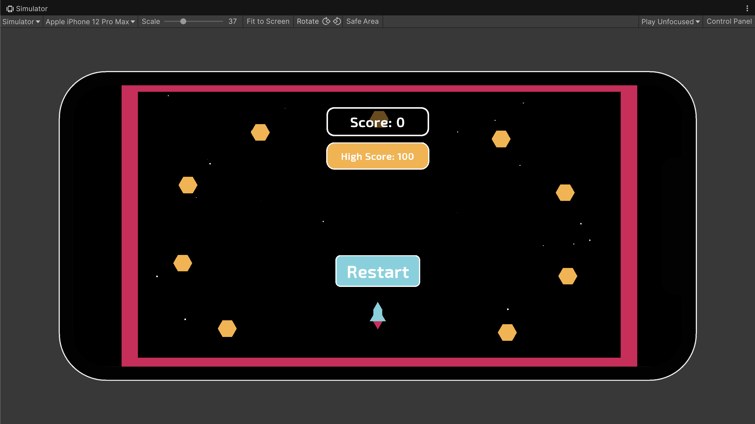 - Set the Simulator to a mobile device of your choosing, rotate to the landscape orientation, and test the game.