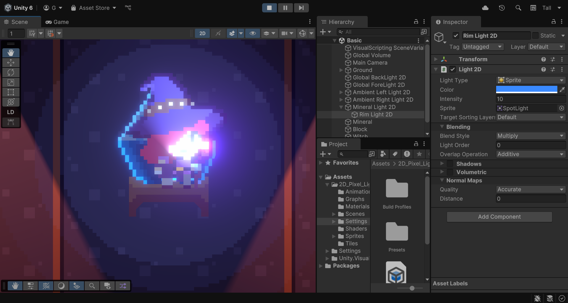 We are almost done with this course, you have learned a lot of different ways to enhance lighting in a 2D pixel scene, but you might have noticed a very visible issue—If you move the Witch GameObject close to the Mineral Light, you can see the light causes severe light leakage making the Witch sprite unrecognizable.