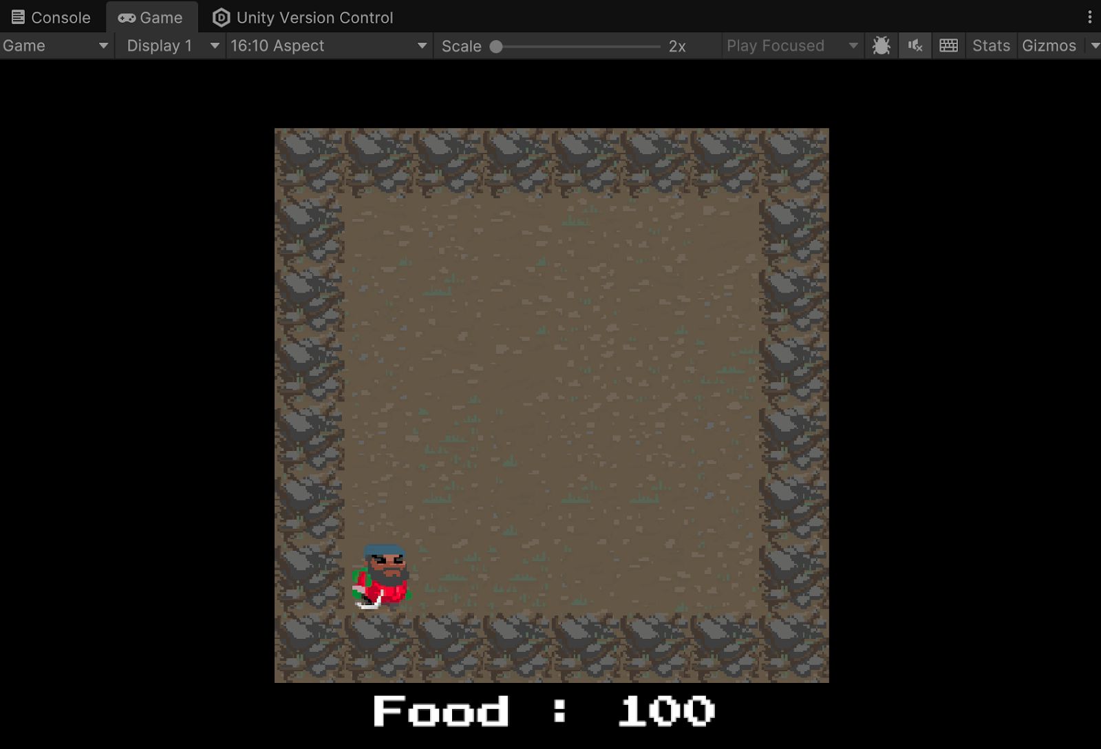 This is because the position the food is placed in is picked randomly, so there’s a possibility (in our example, 7x7=49 empty cells, so a 1/49 chance) that the same cell is picked twice, and since this cell will already have a ContainedObject, a new food prefab won’t be added. There’s also a chance that the starting player cell is the one picked, or both might happen!