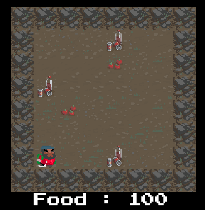 - Coded the functionality to have the food resource decrease with each turn of the game and increase every time the player character collects a food resource.