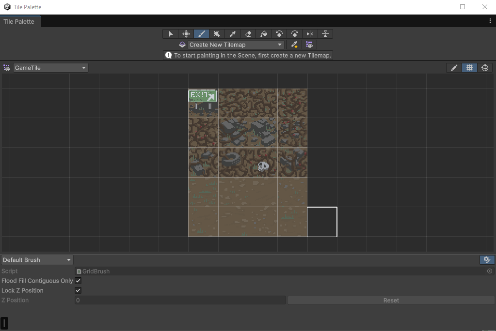 In 2D Beginner: Adventure Game, the tilemap was painted manually in the Editor because the map was previously designed and fixed. In this case however, the game is procedural, so the tilemap will be created by code because it needs to be different every time the game is played.