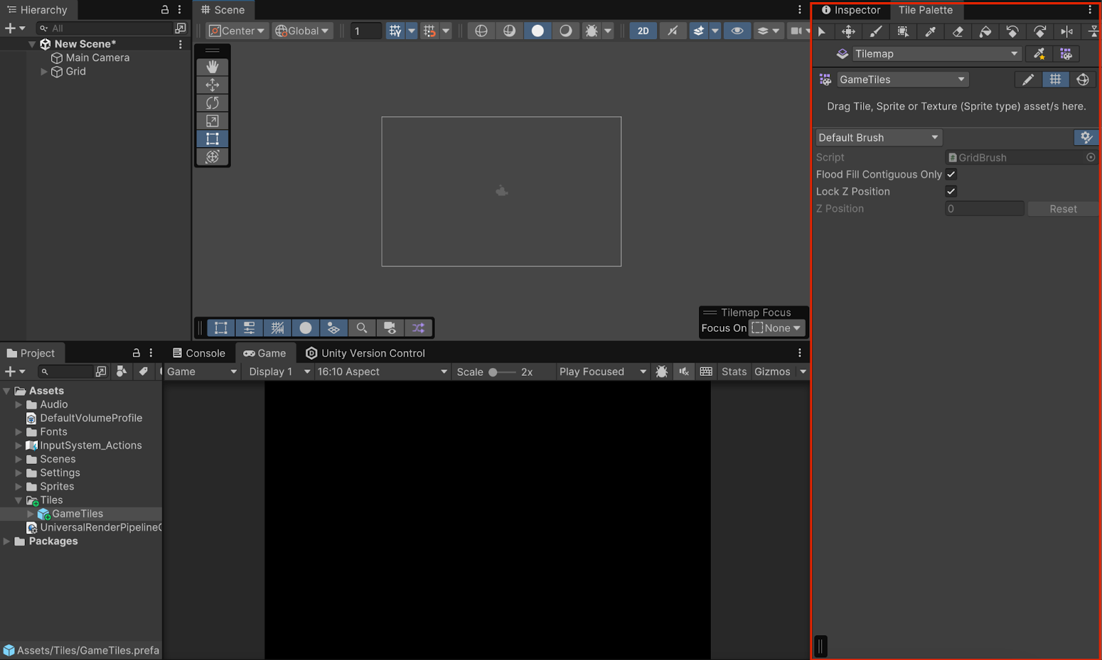 From the list in the previous tutorial, the first task you need to complete is to create the game board. For this you'll use the tilemap feature of Unity.