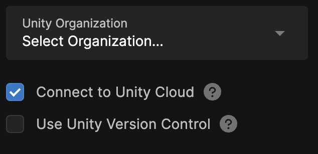 3. Enable Connect to Unity Cloud and Use Unity Version Control.