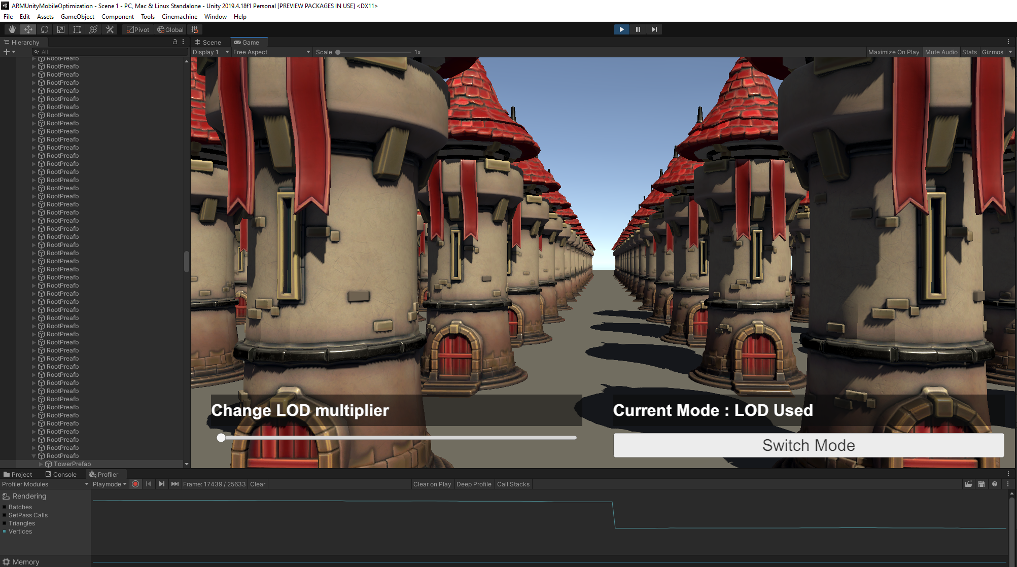 In this sample Scene, you will get to profile and measure the difference in performance using LOD and non-LOD models.