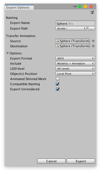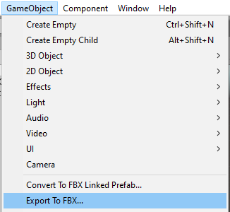 4. From the GameObject dropdown select Export to FBX... (Figure 02).