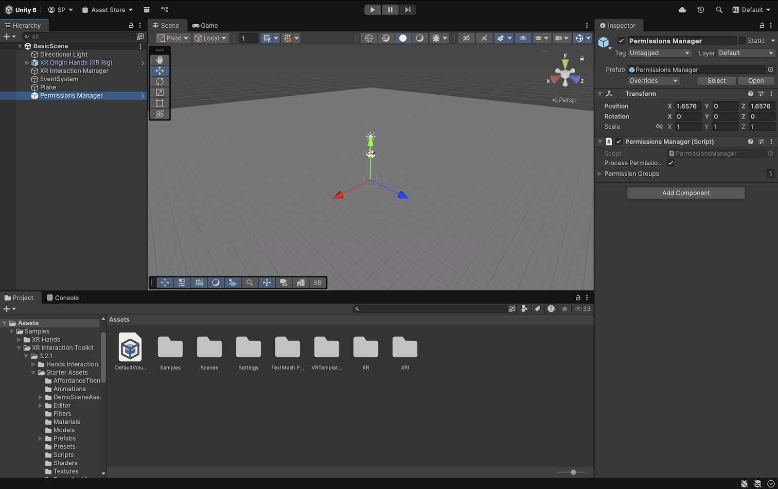 6. Drag the PermissionsManager prefab into the Hierarchy window.