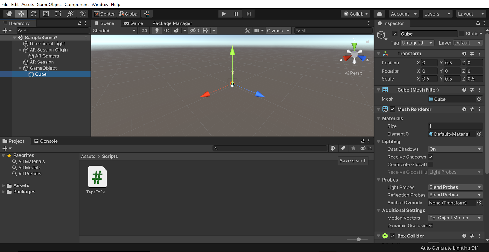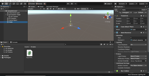 11. Build and run your project. Make sure to tap your screen to instantiate a cube!