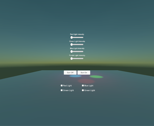 Similar to the buttons, add functionality to the sliders so they control the colored lights’ intensities.
