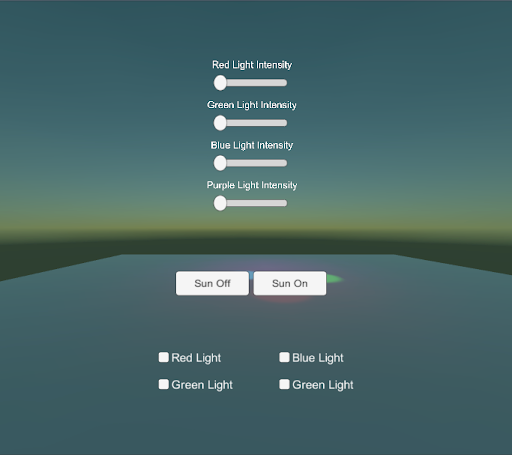 Link the bottom Sun buttons to the Directional Light (representing the sun) to turn it on and off.