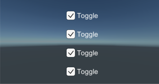 A Toggle Group can be used to group a set of Toggles that are mutually exclusive. Toggles that belong to the same group are constrained so that only one can be selected at a time. Selecting one automatically deselects the others.
