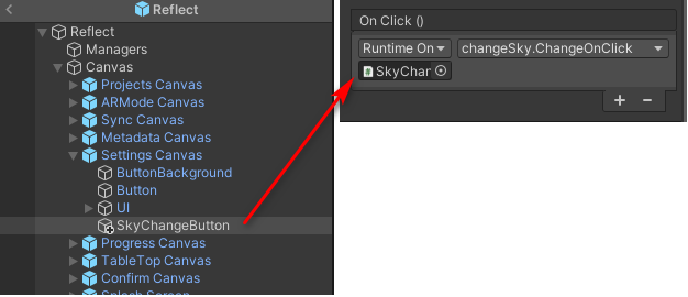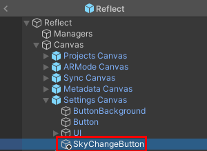 We’ll start by creating a new button that will change the sky when clicked. This button will be created under the existing Settings Canvas and will appear after the splash screen sequence.