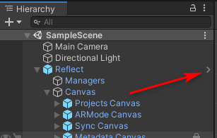 3. Open the Reflect Prefab by clicking on the arrow to the right of the Reflect element in the Scene Hierarchy (Figure 02).