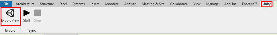 6. When all elements have a date assigned, unhide everything and export the model again to Reflect using the Export View option in the Unity tab (Figure 05).