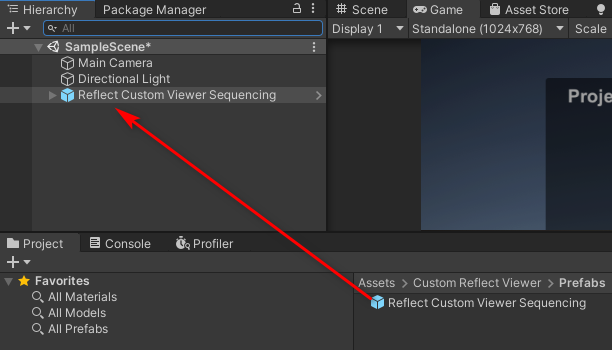 3. Add the custom viewer to the Scene by dragging the Reflect Custom Viewer Sequencing Prefab from Assets > Custom Reflect Viewer > Prefabs to the Scene Hierarchy. (Figure 06).