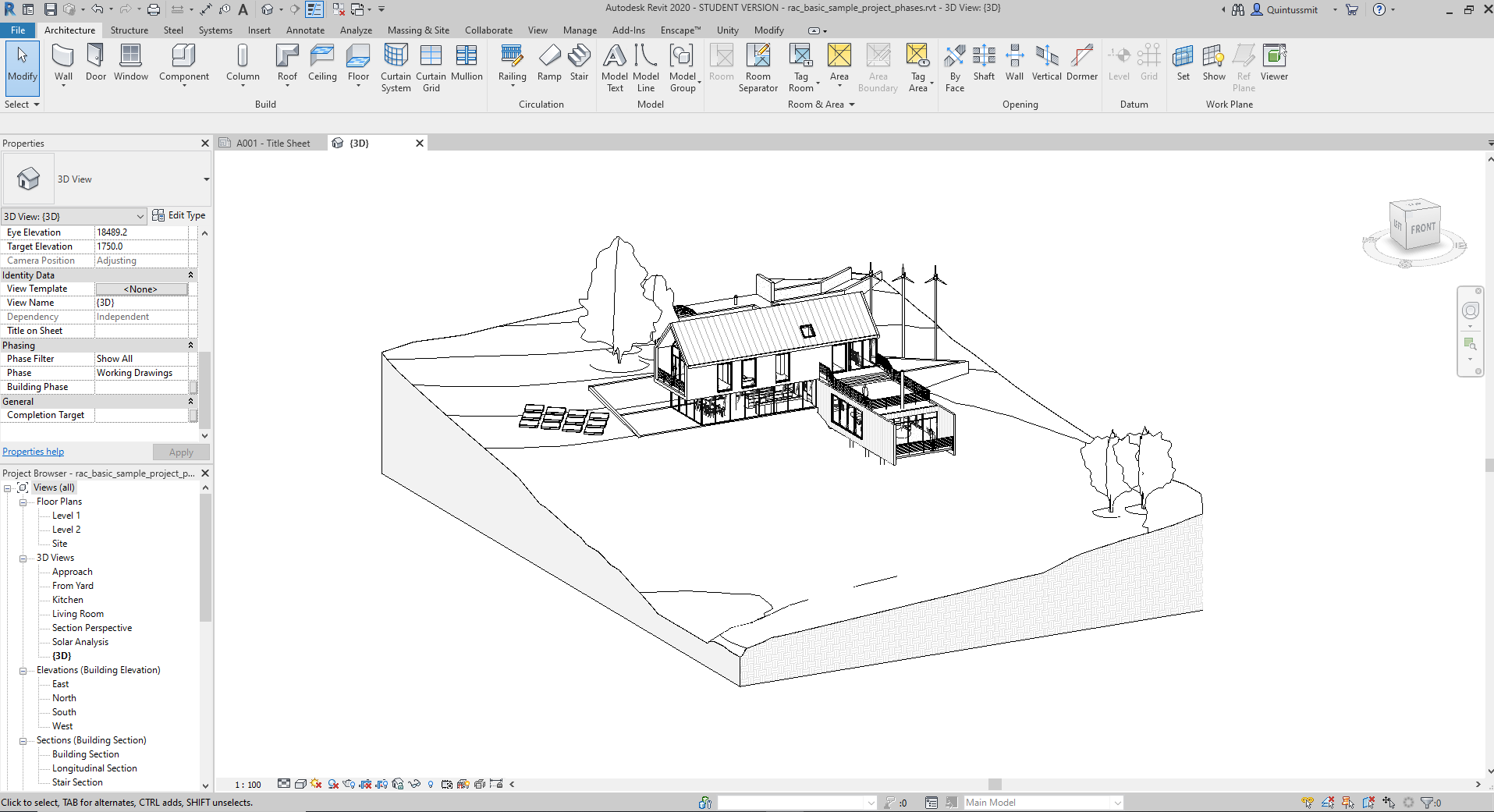 1. Open a Revit project you wish to use. We used the sample project that is installed with Revit (Figure 01).