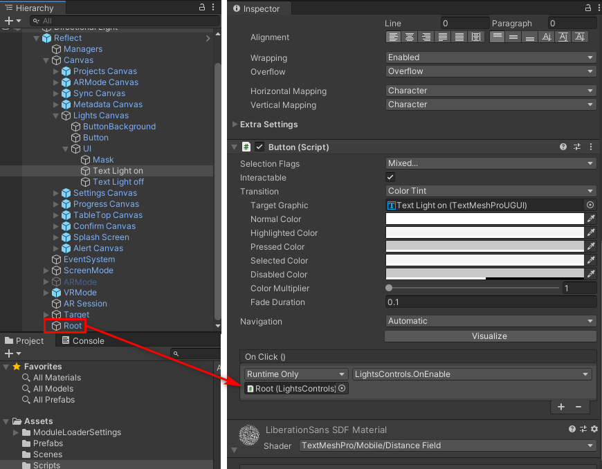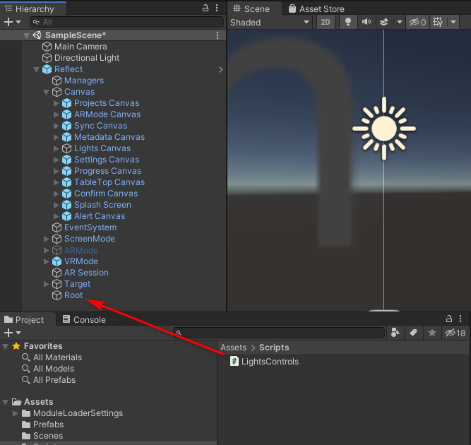3. Drag the LightControl script from Assets > Scripts onto the Root object (Figure 03).