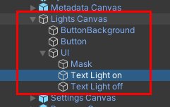 5. Expand the Lights Canvas element in the Reflect Prefab and select the Text Light on UI element (Figure 04).