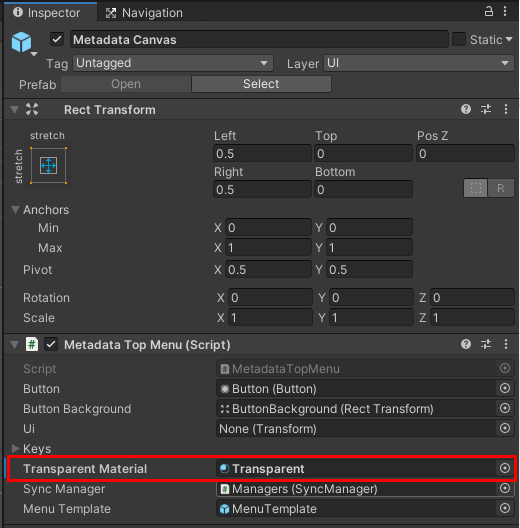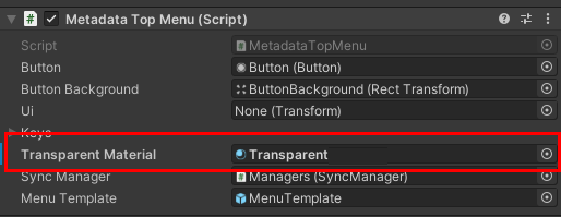 2. In the Inspector, select the Transparent Material slot (Figure 03). This is where the Transparent material is assigned.