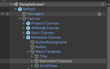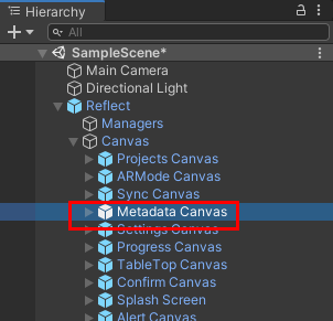5. In the Scene Hierarchy, navigate to Reflect > Canvas > Metadata Canvas.