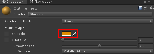 2. Inside this folder, create a Material called Outline_new (Figure 06) and choose the color and/or effect you’d like applied to the highlighted object. In the example below, a Standard Shader is used with an orange color (Figure 07).