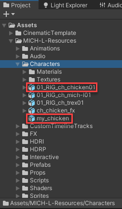 1. In the Project window, open the Assets > MICH-L-Resources > Characters folder.