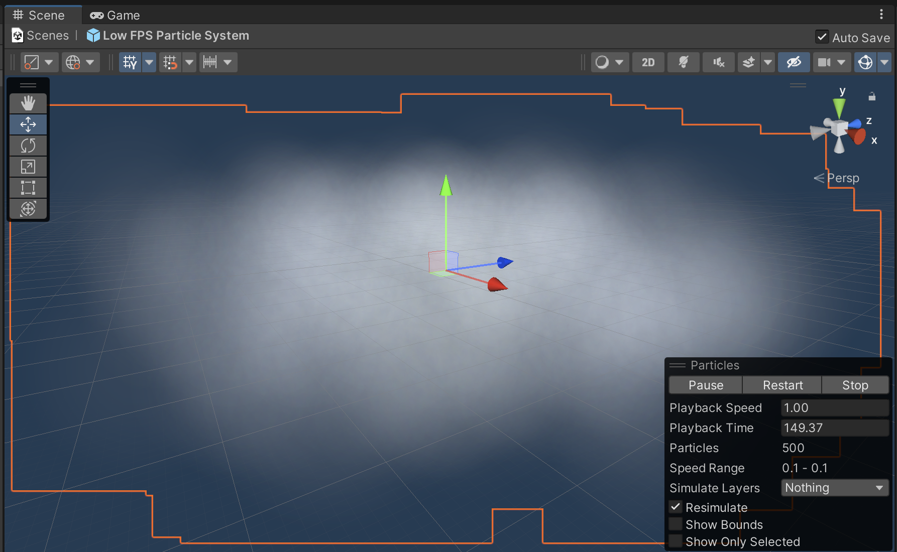 In the project assets, we have provided a sample particle system deliberately designed to negatively impact performance. The system is made up of large, overlapping, semi-transparent particles, which combine to create a fog effect.