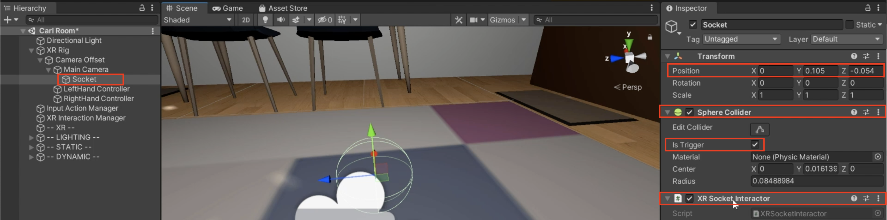 - In the Hierarchy, duplicate the Socket 1 object two times.