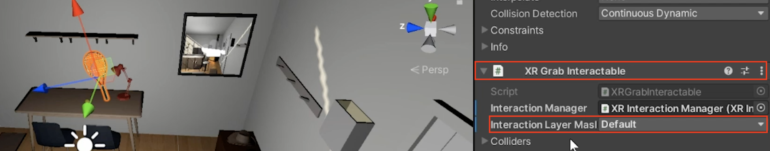 - In the XR Grabbable Interactable component, from the Interaction Layer Mask drop-down, select Add Layer.
