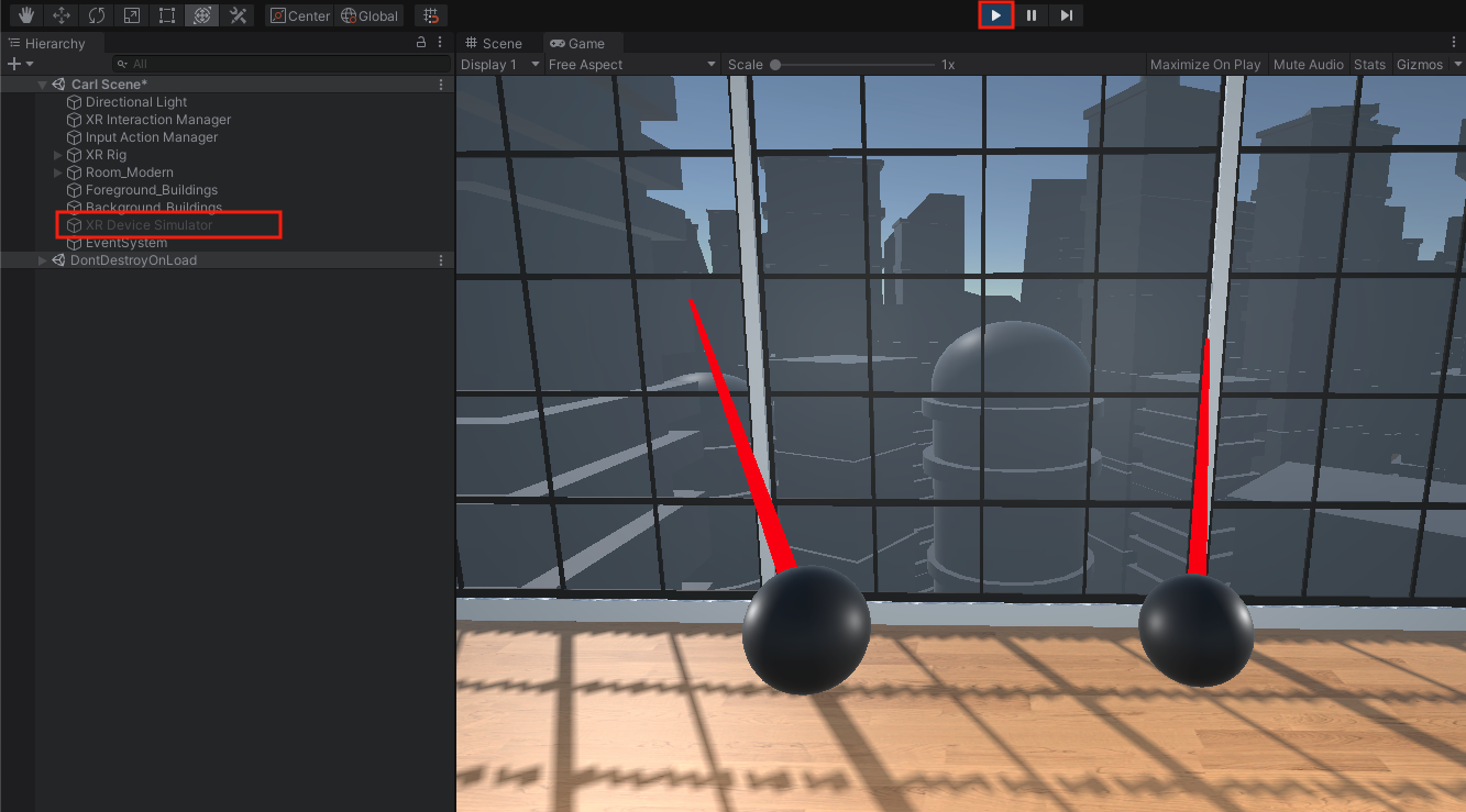 - Drag the XR Device Simulator Prefab into the Hierarchy.