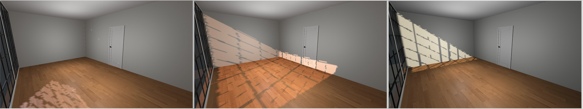 Experiment with the directional light to achieve the shadow and color you want in your room: