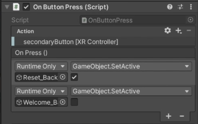 - Assign the binding path to XR Controller > Optional Controls > secondaryButton.