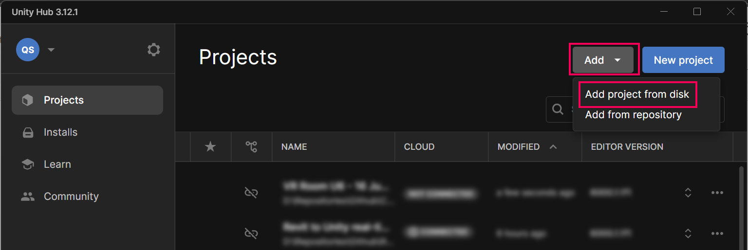 - If you don’t know how to open a project from the Unity Hub, follow the instructions in the Unity Hub manual.