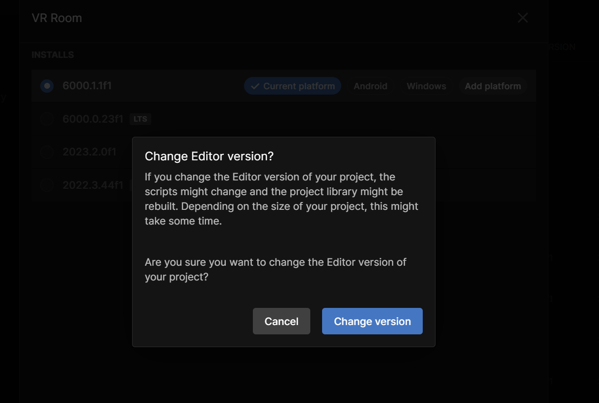 - If prompted to upgrade your project to a newer version of Unity 6, select Confirm.