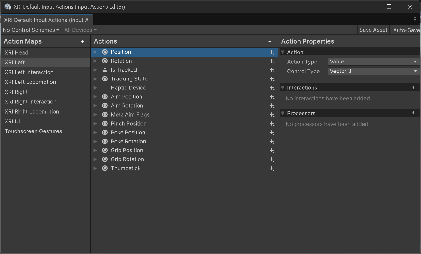 - Double-click the XRI Default Input Actions asset to open the Input Actions Editor window.