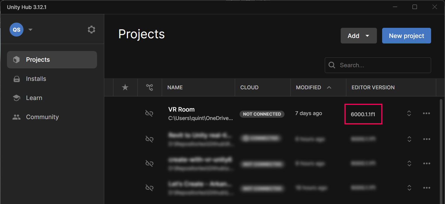 - When prompted to choose a location, create a new “Builds” folder, then save your project as “[YourName] - VR Room - 1.1”.