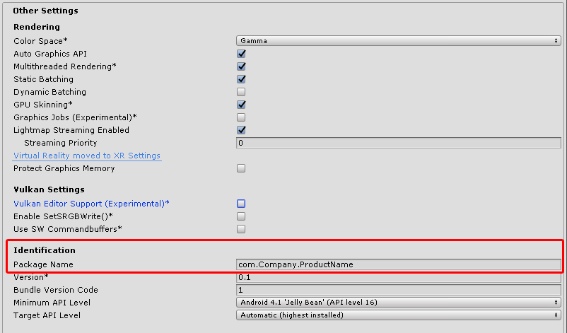 - In Other Settings, for this introduction, we are only concerned with the Package Name for our mobile project. The Package Name is also known as the Application ID or bundle identifier. The bundle identifier must be unique, and cannot be reassigned to another project once the game or app has been published. Name your project and close Other Settings. (Figure 05)