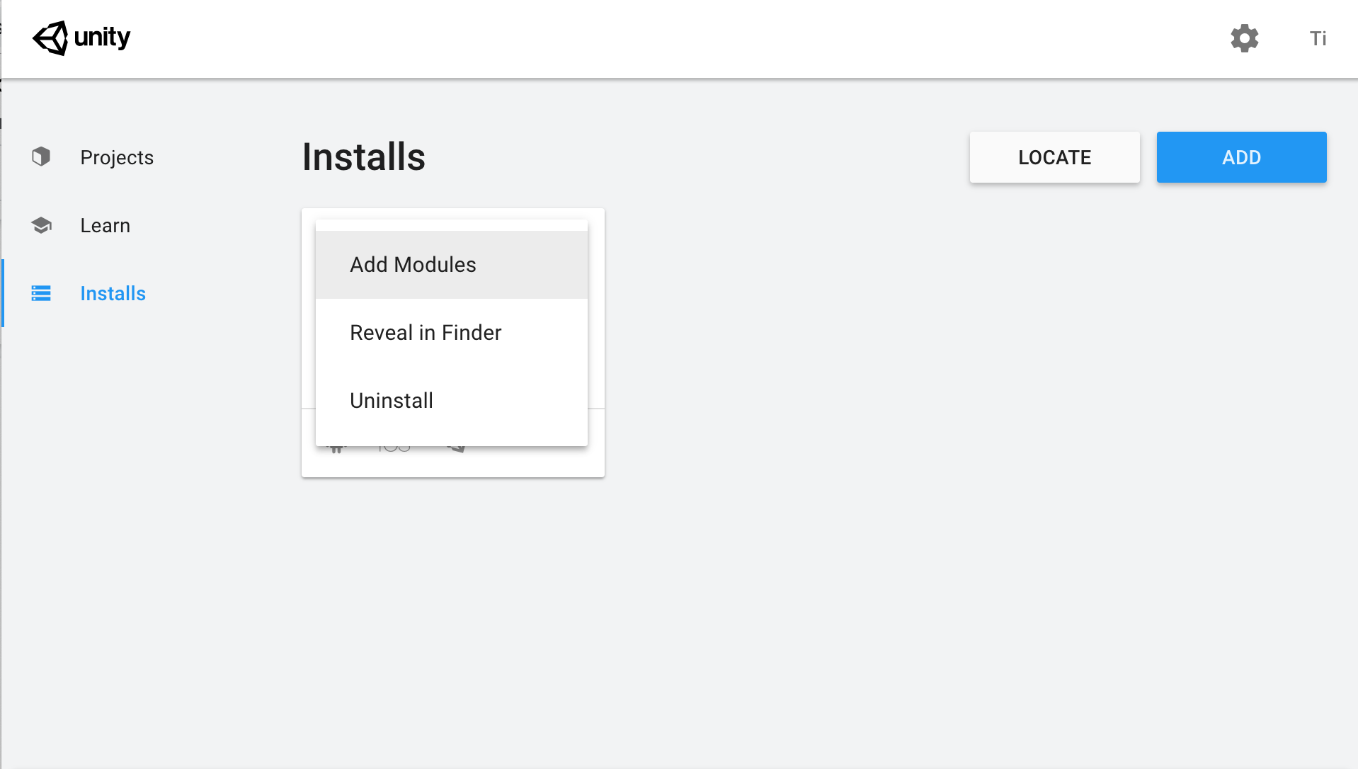 - Select the three dots on the bottom right of the Unity version, and select Add Modules. This will open the install page and allow you to select platform components to include (Figure 08).
