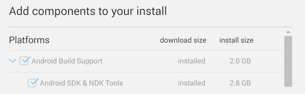 To build a Unity application targeting Android, you must install the Unity Android Build Support platform component with your Unity Editor. You’ll also need to install the Android Software Development Kit (SDK) and NDK, which are required to build and run any code on your Android device. By default, Unity installs a Java Development Kit based on OpenJDK, and as of the 2019 series, provides direct access to the SDK and NDK.