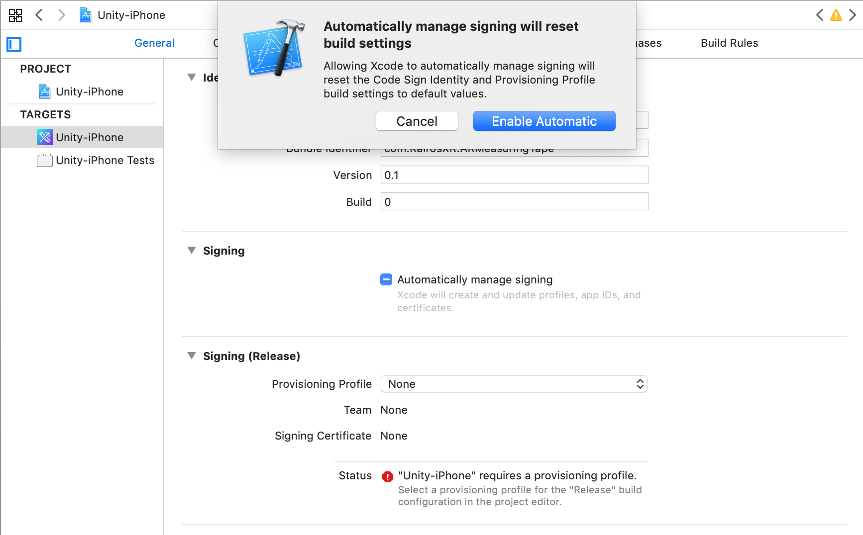 - Back in the main window, select Automatically manage signing to automatically create and update profiles, app IDs, and certificates. This is typically a manual process through the Developer Portal, but Xcode now automates this if your Apple IDs are properly set up (Figure 06).
