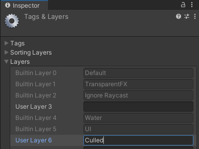 5. Assign the Culled layer to the red capsule by selecting it from the Layers list in the Inspector.