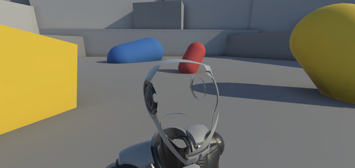 If you play a lot of video games, this may be a familiar sight. When objects get too close to the camera, parts of them move outside of the near clipping plane, giving the user a view of the interior of the mesh. Because objects in this scenario tend to take up a large amount of the screen, this can be just as distracting as objects that suddenly fade into view at the far clipping plane. Generally speaking, you should avoid this issue by adjusting the character controller so objects never get this close, but if that isn’t practical, you can reduce the value of the near clipping plane.