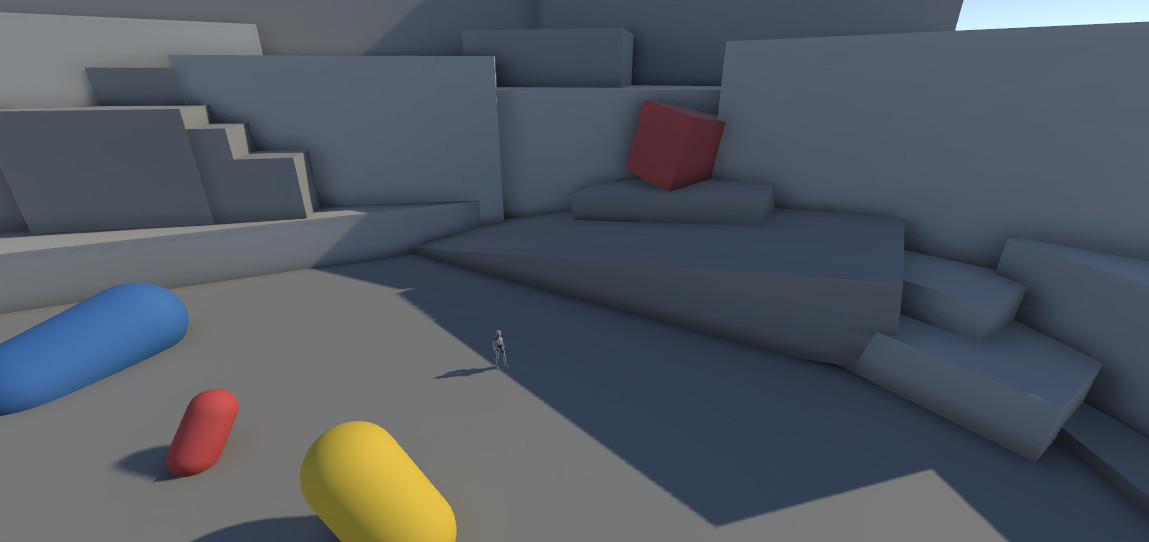 Because of the camera angle, it’s difficult to notice that the platform the red cube is on is at an angle and mostly too high for the character to jump onto. This forces the user to try and fail to jump onto it before realizing they need to navigate to the lower end of the platform first. In a static environment with no risk, this isn’t much of a problem. However, if some sort of external challenge is involved (enemies, a time limit to reach the cube, etc.), the lack of visual feedback will really frustrate the user!